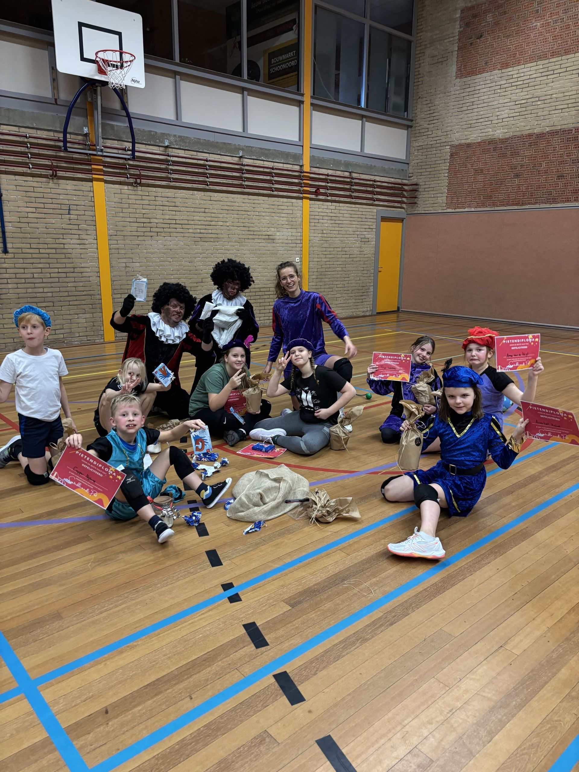 • De Pieten doen mee met de training en helpen bij oefeningen, spelletjes en challenges.